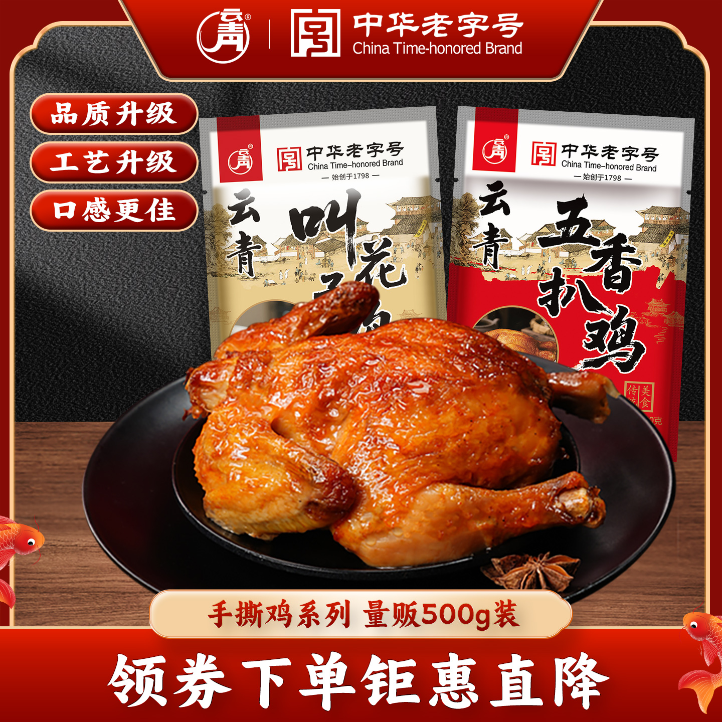 云青叫花鸡500g五香扒鸡整只麻油荷叶鸡正宗卤味熟食真空开袋即食