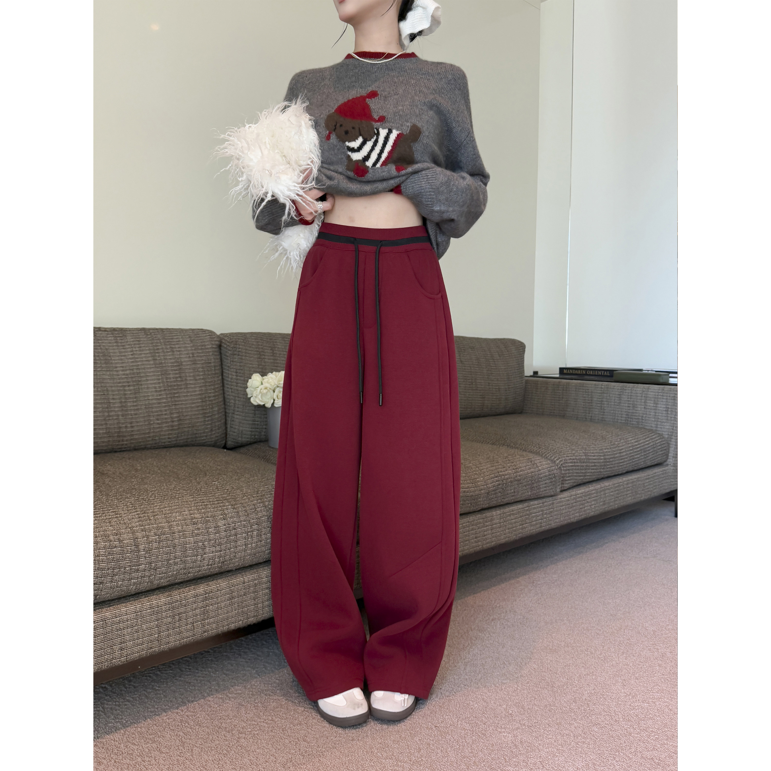 - 秋冬宽腿裤女