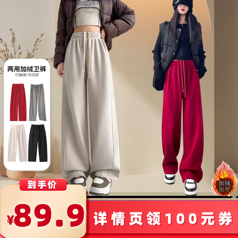 2024新款阔腿裤女加绒卫裤秋冬香蕉裤显瘦高腰休闲裤纯棉保暖长裤