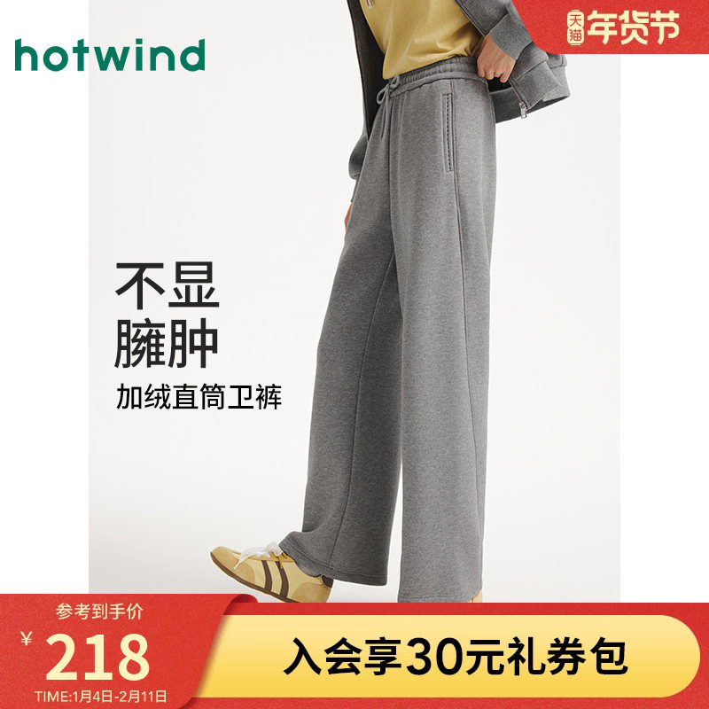 热风女士加绒卫裤2025年冬季新款舒适直筒裤通勤保暖休闲宽松长裤
