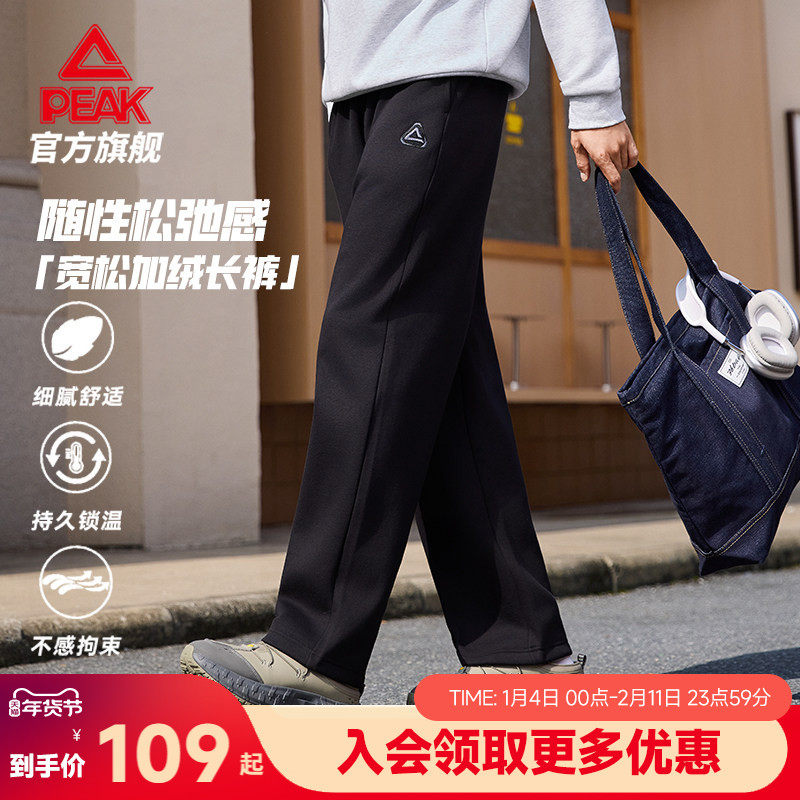 匹克针织运动裤男士秋冬新款直筒加绒卫裤宽松阔腿通勤休闲长裤女