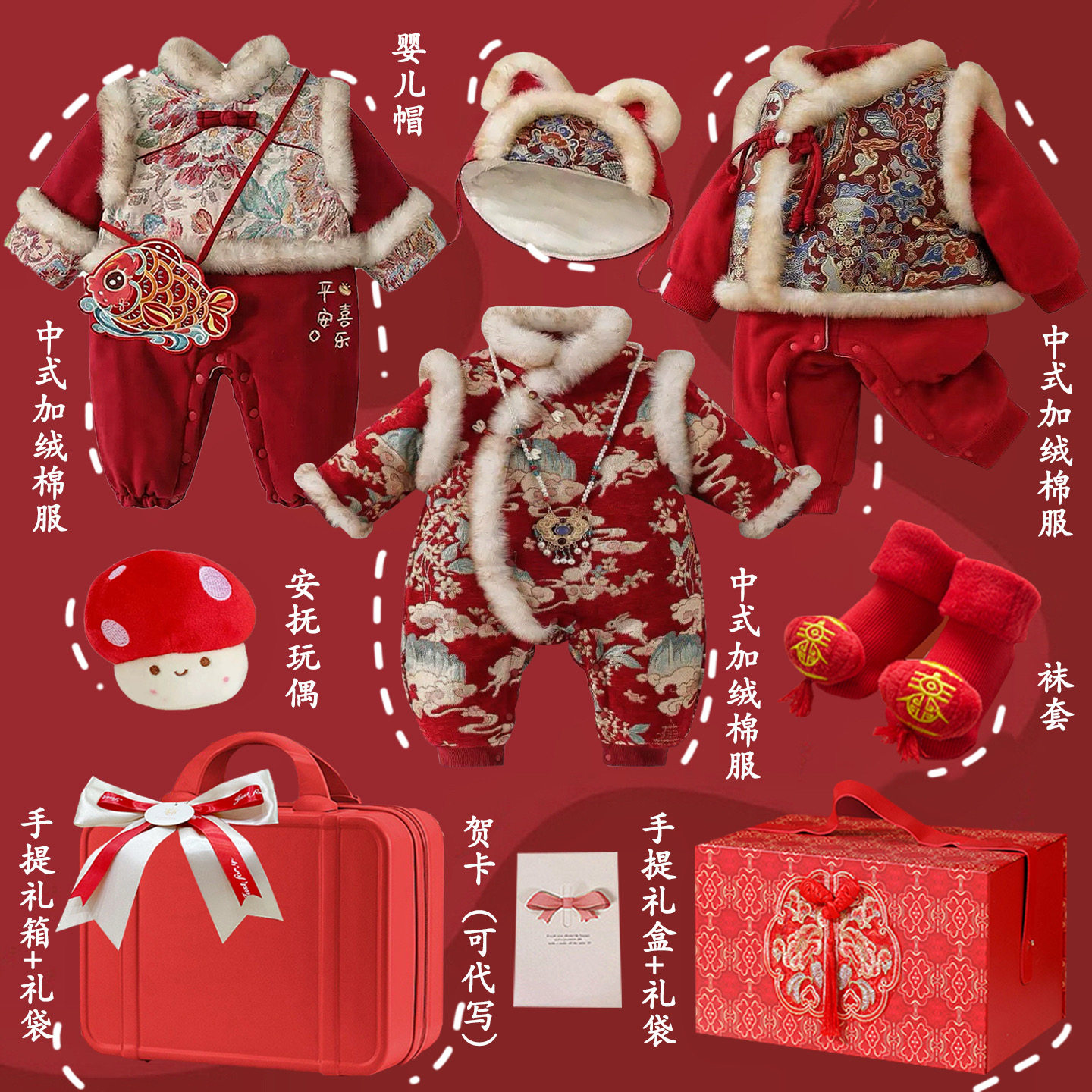 婴儿礼盒秋冬新生儿衣服礼盒套装宝宝红色满月服周岁见面礼物高档