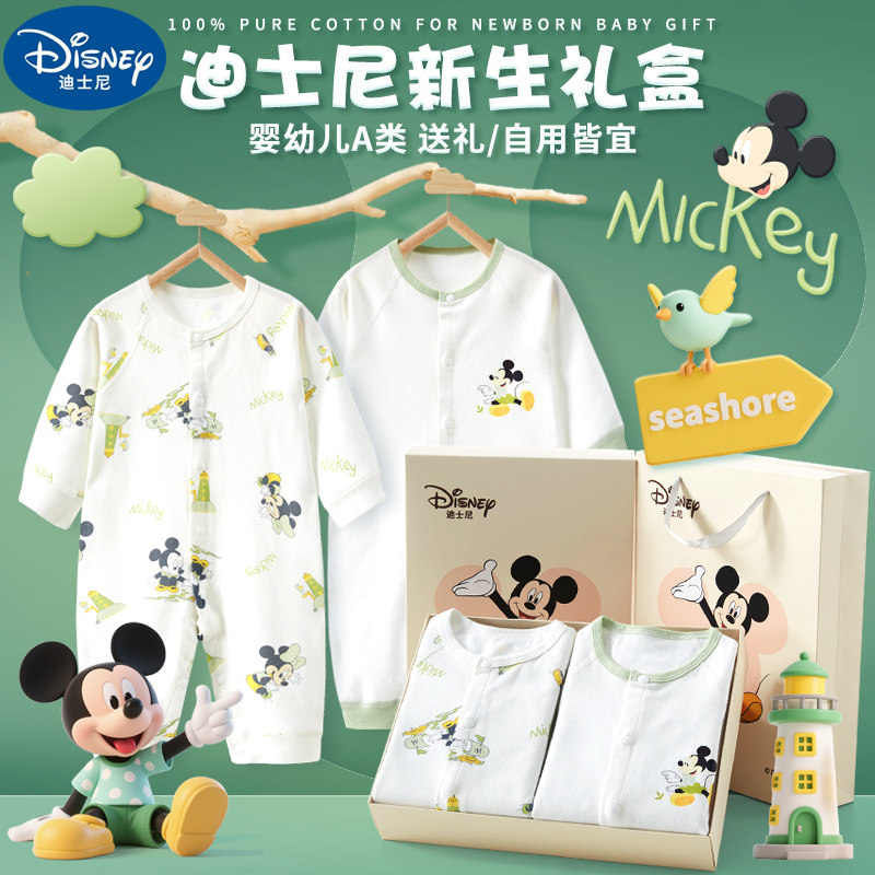 迪士尼婴儿衣服套装礼盒新生儿见面礼物刚出生宝宝连体衣哈衣秋冬