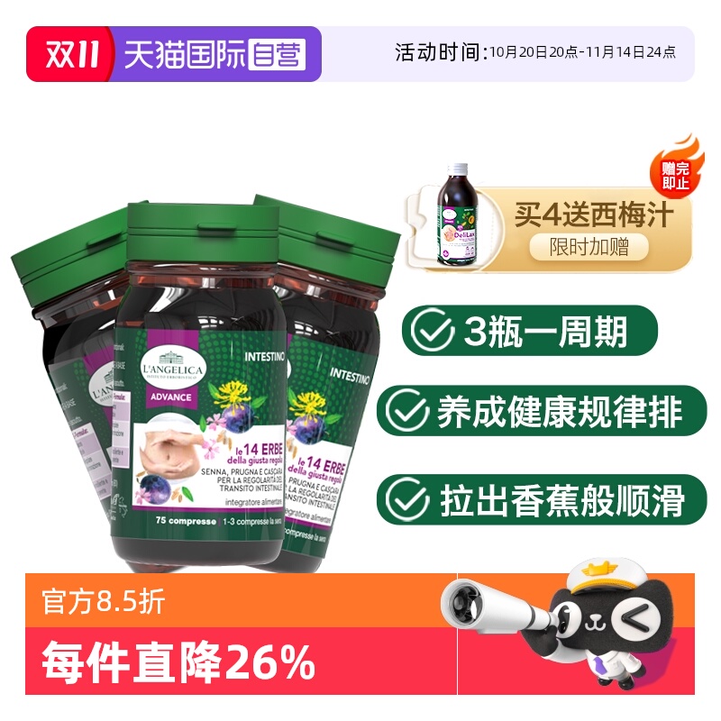 【自营】Langelica小绿瓶清肠片润肠通宿助促排便膳食纤维素3瓶装