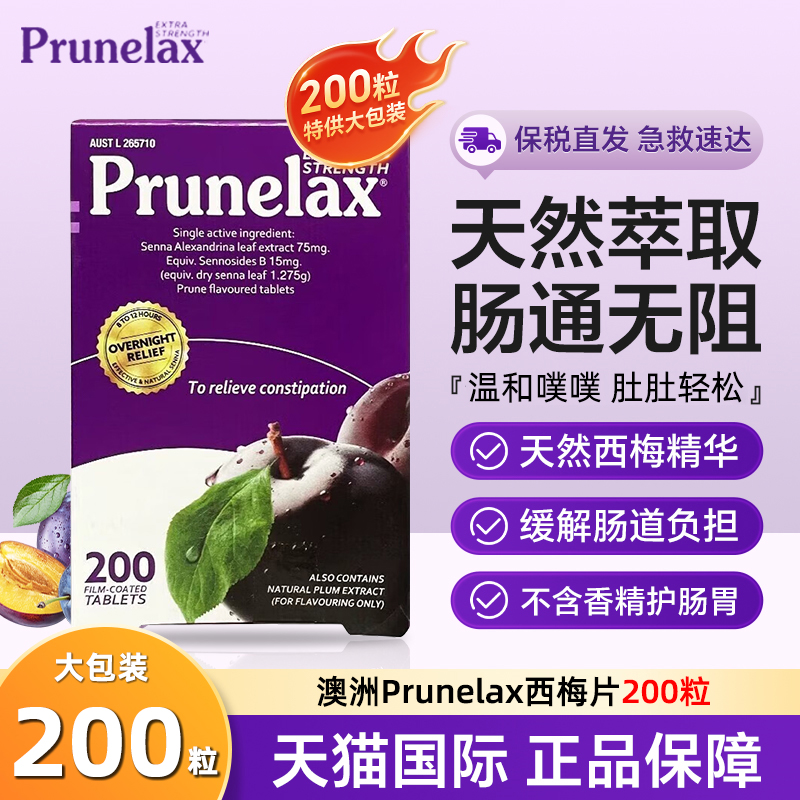 澳洲prunelax西梅片天然番泻叶植物膳食纤维素肠道健康畅通200粒