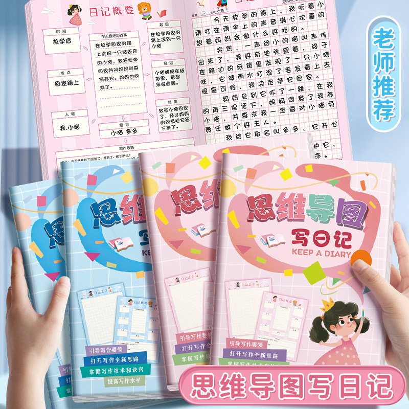 日记本小学生思维导图写日记B5周记本作文本田字格一年级作业本二三四五年级思维开发专项训练方格笔记本本