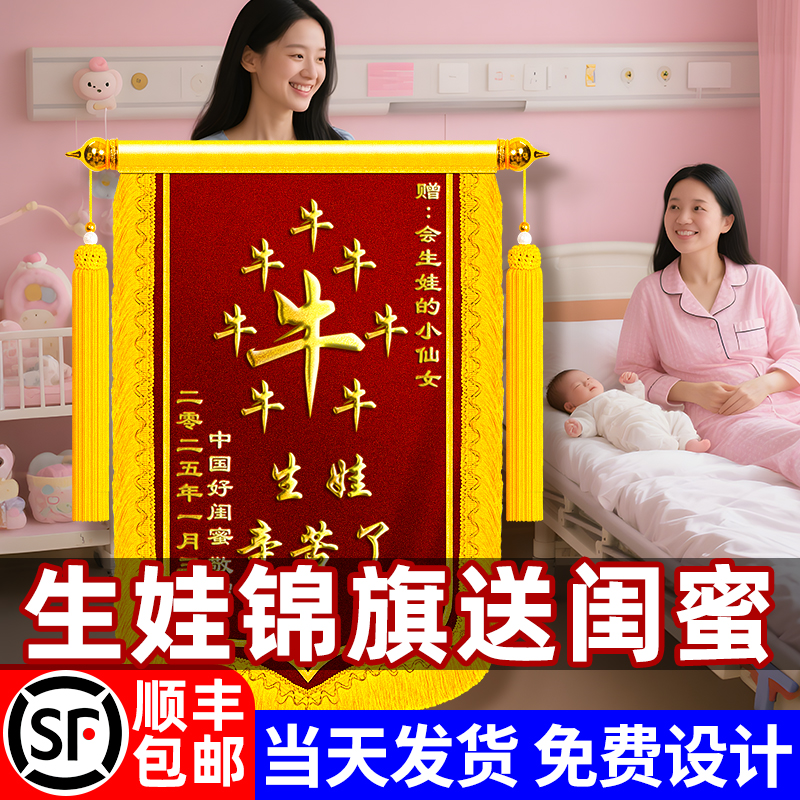 生了个人真了不起锦旗定制做送闺蜜老婆朋友搞笑旗子高档订做旌旗感谢媳妇怀孕辛苦孕妇生娃光荣生娃旗帜制作