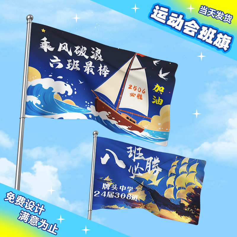 运动会班旗定制初高中入场开幕仪式手持大旗子创意班级比赛队旗电子版班徽logo图案设计乘风破浪带杆旗帜制作
