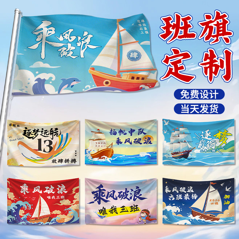 班旗定制运动会旗队旗校旗初高中小学幼儿园旗帜设计订制个性班旗中国风动漫乘风破浪旗帜制作