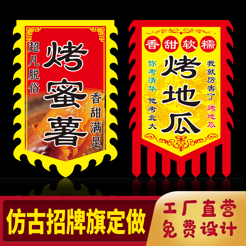 仿古旗定做 烤地瓜广告旗 烤蜜薯广告招牌旗定做 小吃车广告旗 旗幡 幌子 古镇复古旗子 彩旗旗帜制作