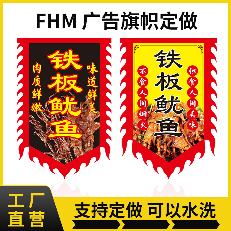 双面仿古旗定做 铁板鱿鱼广告旗 古风旗帜制作 火爆鱿鱼挂旗 夜市摆摊广告旗 复古旗子制作 加厚仿古旗订做
