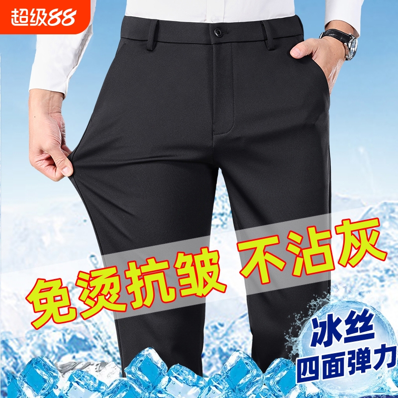 冰丝夏季薄款西裤四面弹力中年男士休闲裤长裤子宽松高端裤子高弹