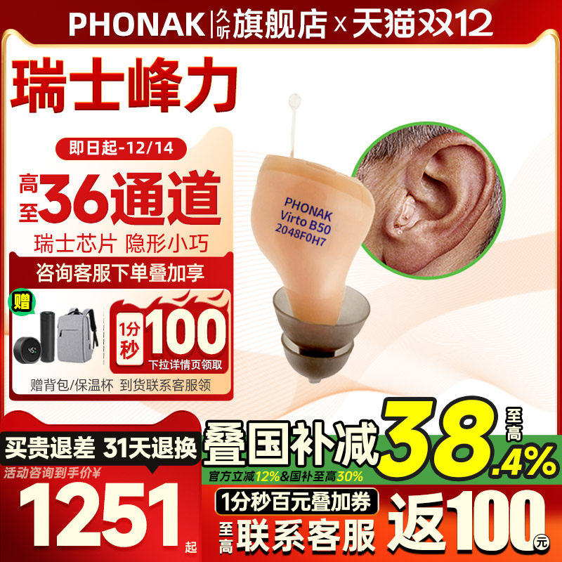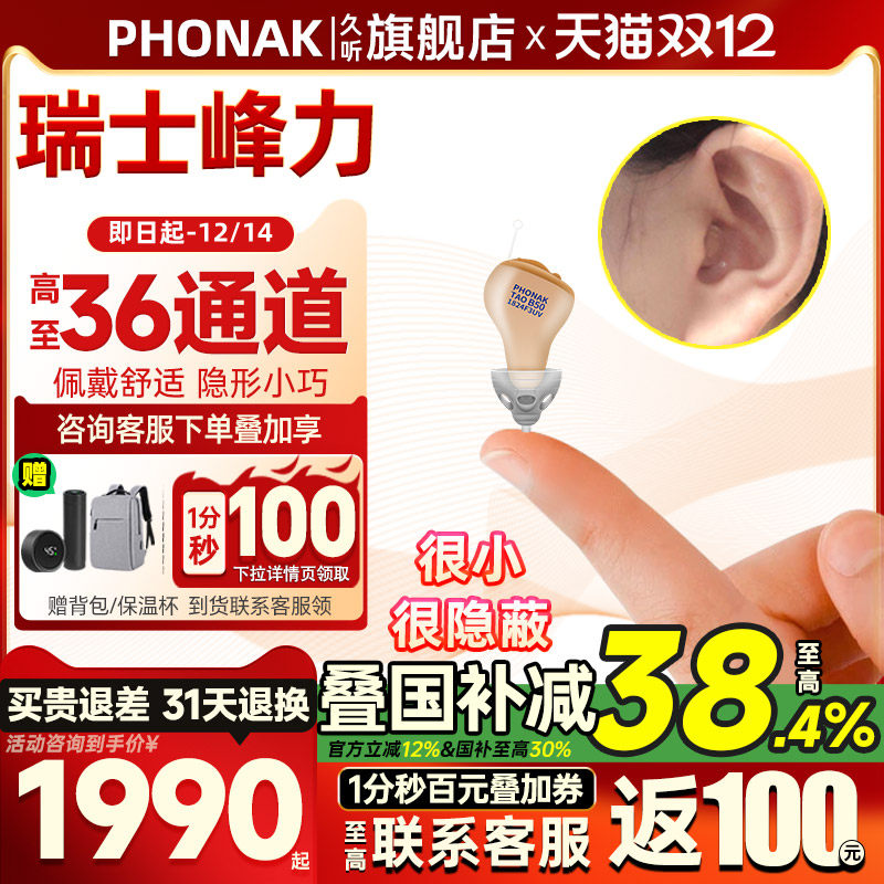 瑞士峰力助听器36通道年轻人隐形耳聋耳背耳内式老人专用旗舰正品