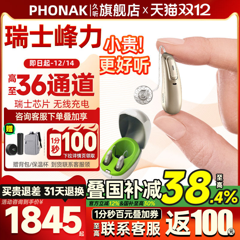 瑞士峰力助听器年轻人高端隐形耳聋耳背耳内式老人专用旗舰店正品