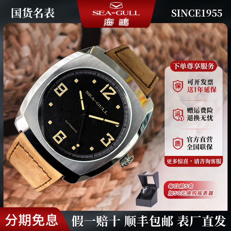 正品海鸥表大表盘酒桶男士商务休闲夜光全自动机械表男表男款6079