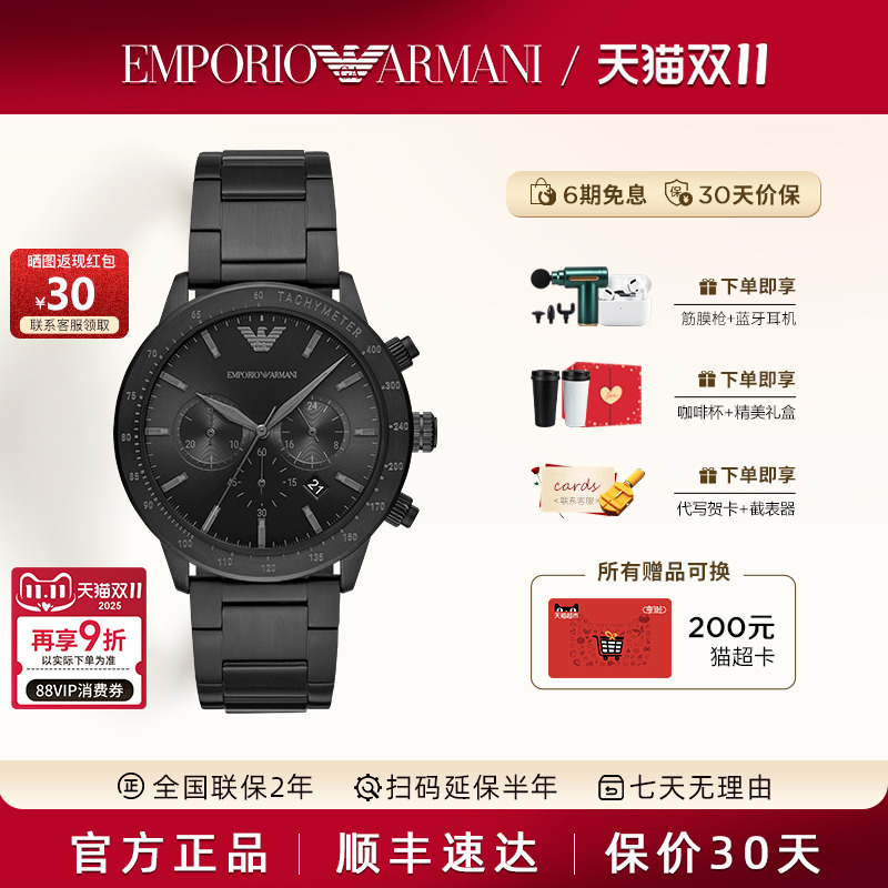 [双11]阿玛尼黑武士男手表潮流运动大表盘男表官方正品AR11242