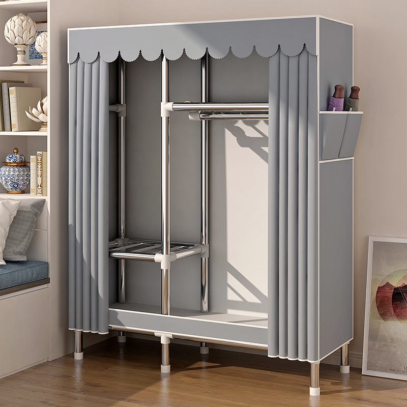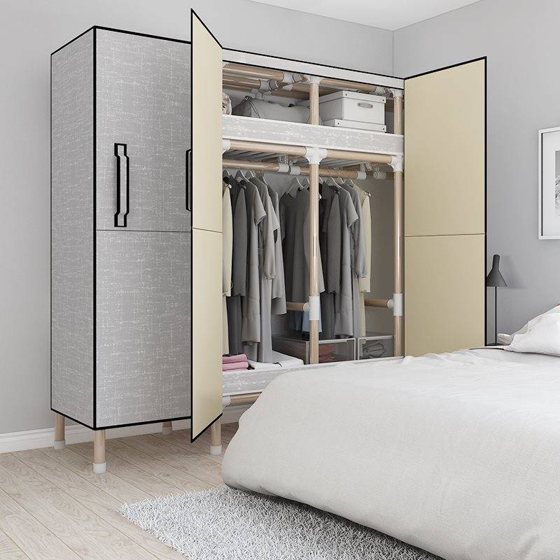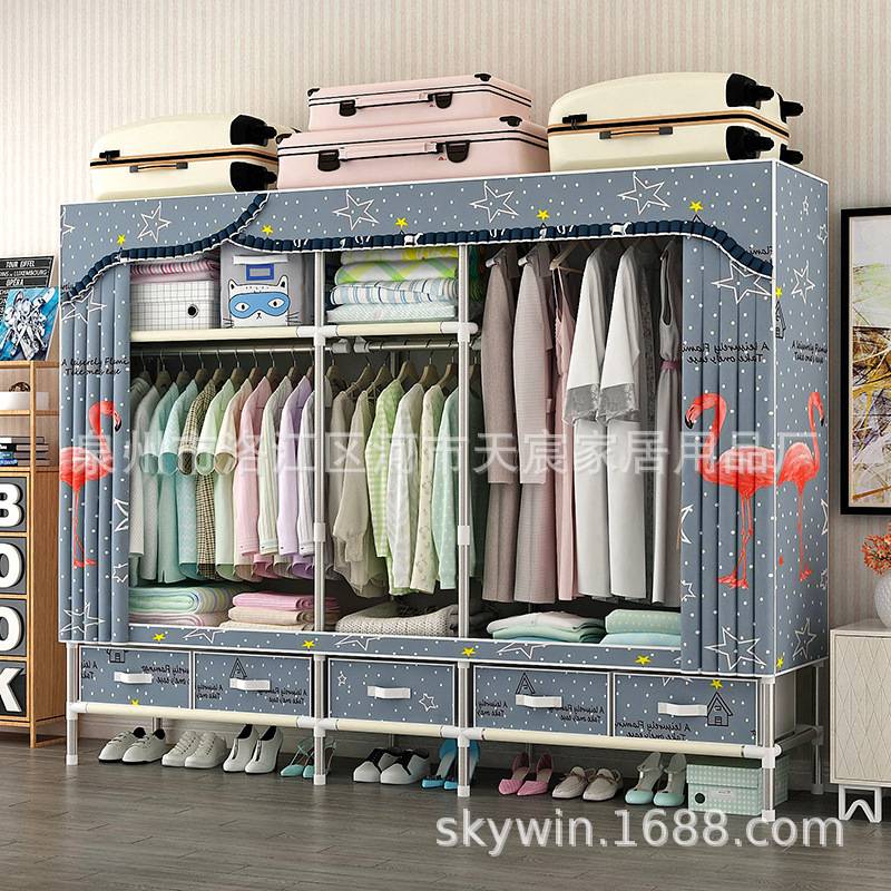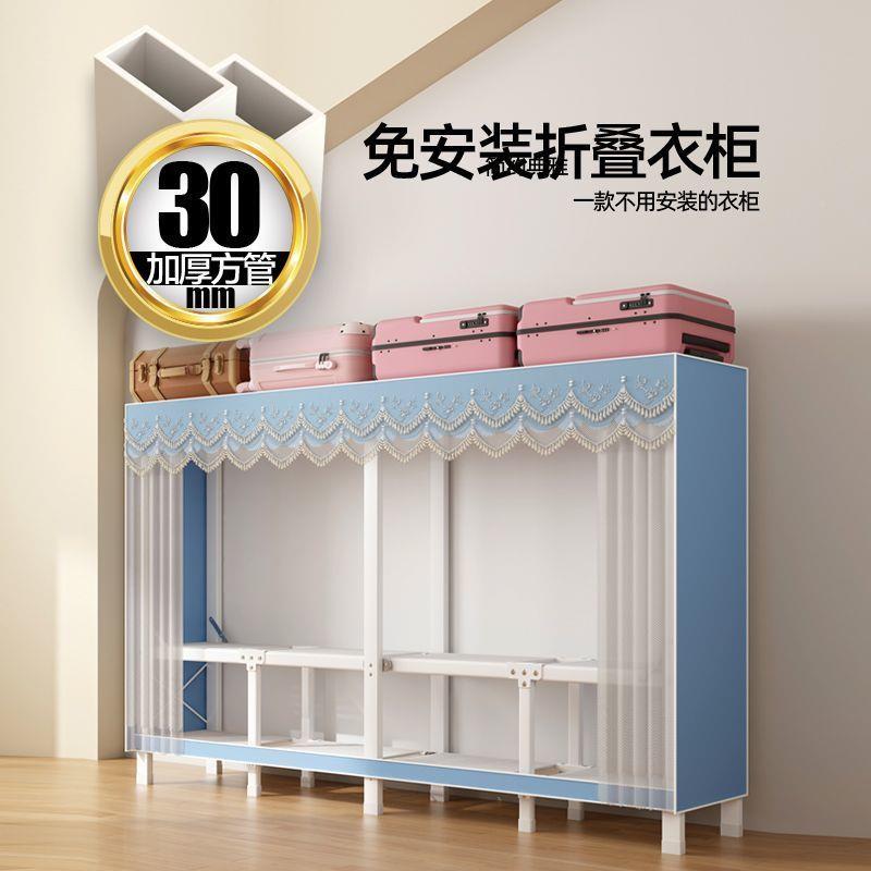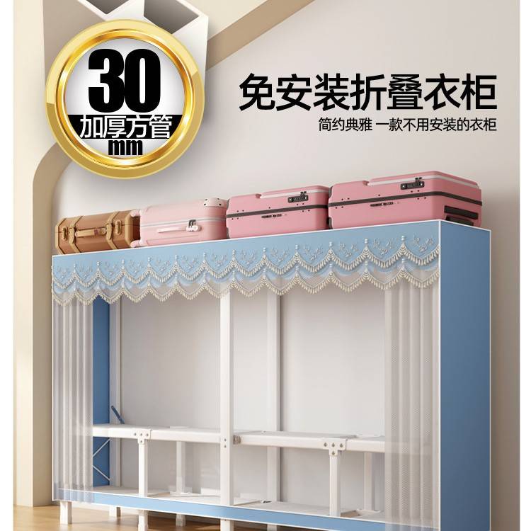 桦崟加粗加厚简易衣布柜出租房用布衣柜家用卧室组装柜子钢管加粗加固摆件垫垫
