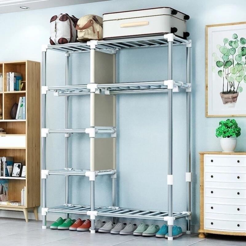 拉炼全封闭布衣柜钢管加粗加固加厚全钢架家用密封简易布柜带轮子