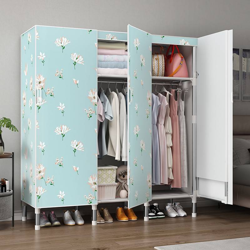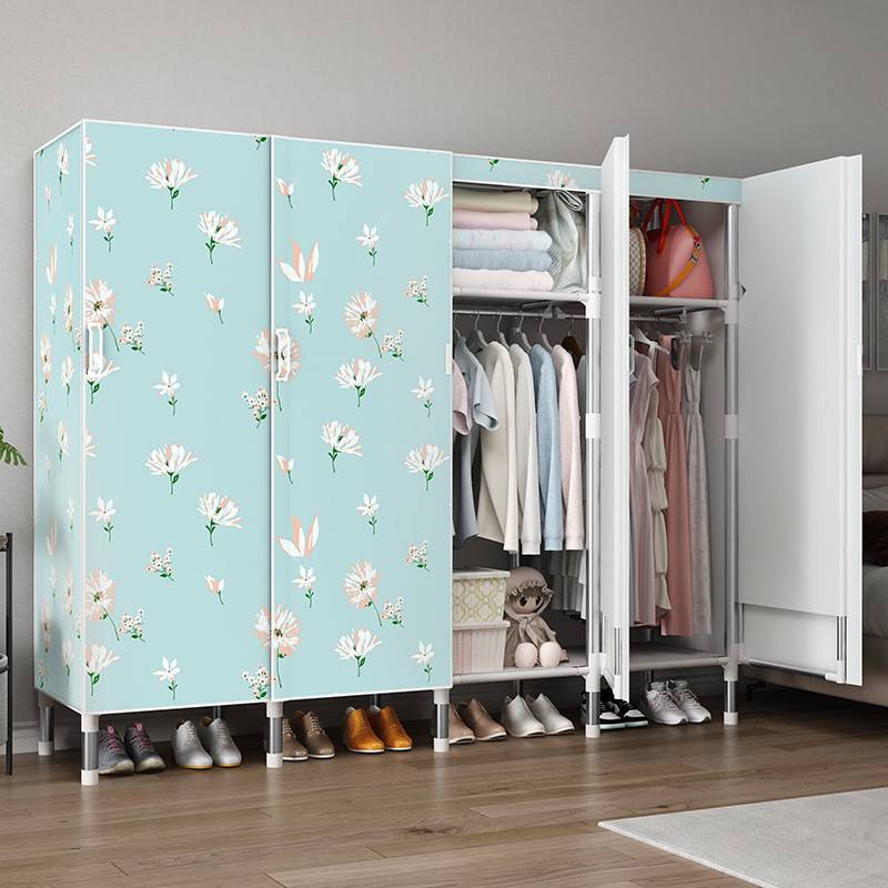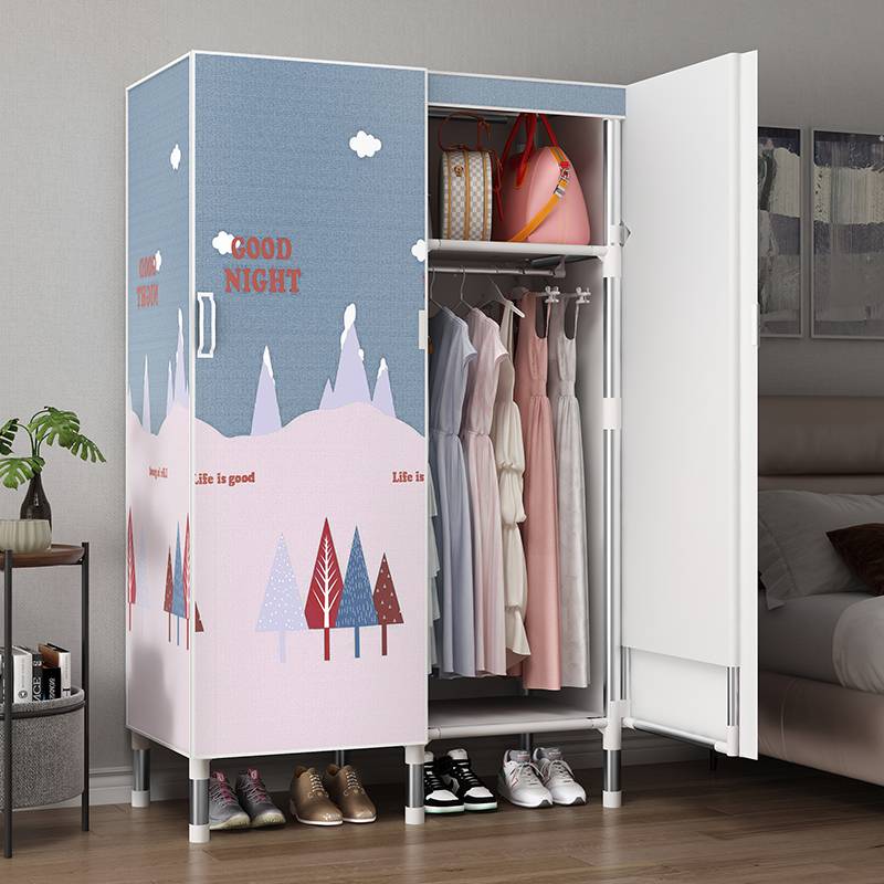 开门布衣柜简易衣柜钢管加粗加厚全钢布艺出租房卧室家用布柜锦标