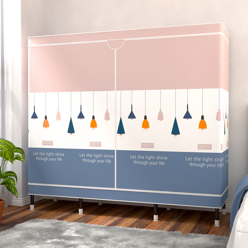 布柜简易布衣柜儿童衣柜卧室家用女孩子收纳柜钢制衣柜奶油风衣柜