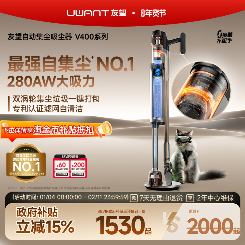 【连续四年销售NO.1】UWANT友望吸尘器自集尘家用无线吸尘机V400