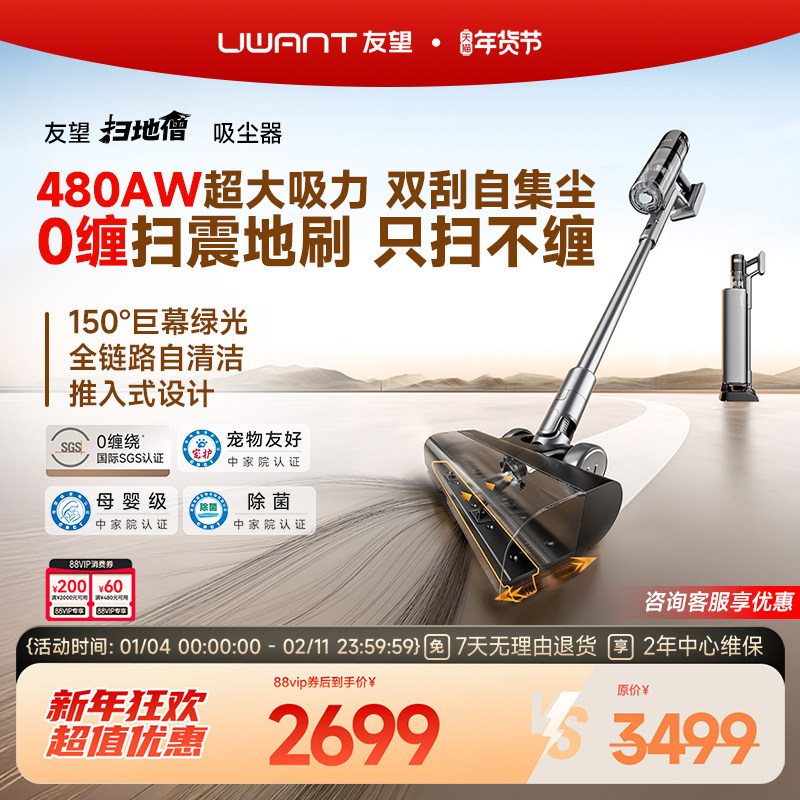 【维嘉同款】UWANT友望扫地僧自集尘吸尘器480AW超强吸力吸尘机