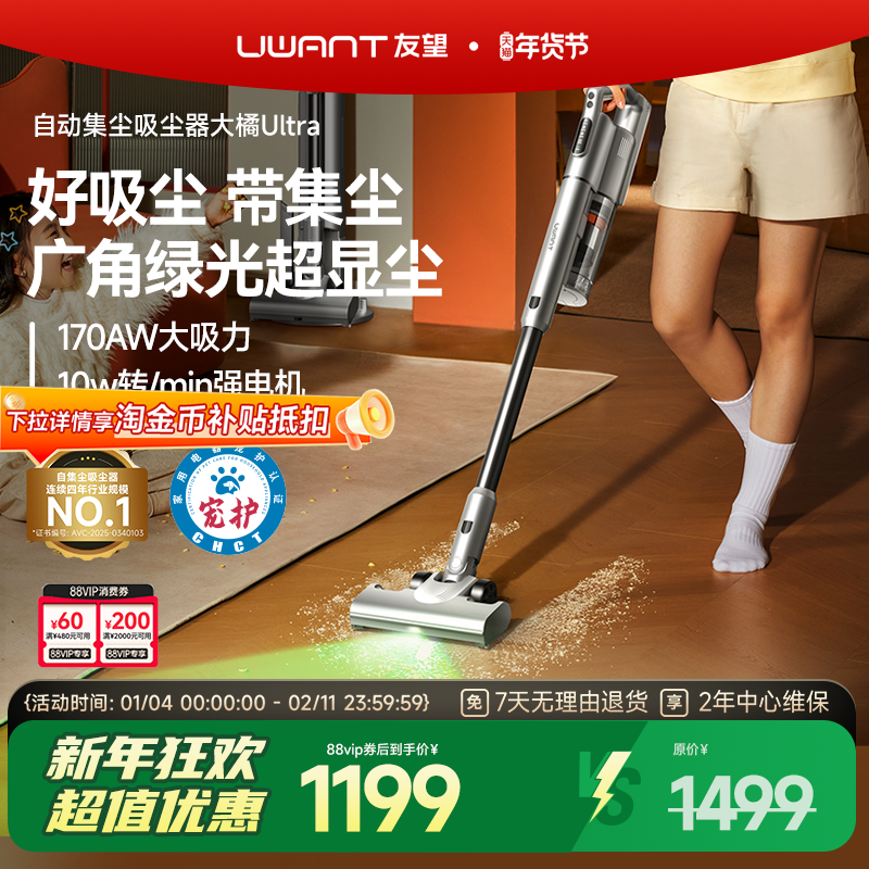 【吸尘器热销榜No.1】UWANT友望大橘吸尘器自集尘家用无线吸尘机