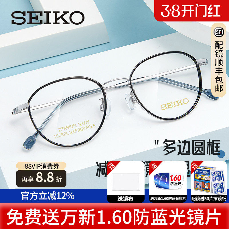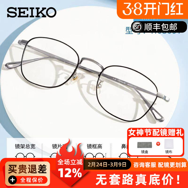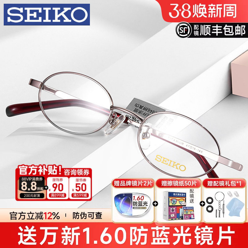 seiko精工眼镜框超轻钛架小框可配高度近视度数女小脸近视镜03085