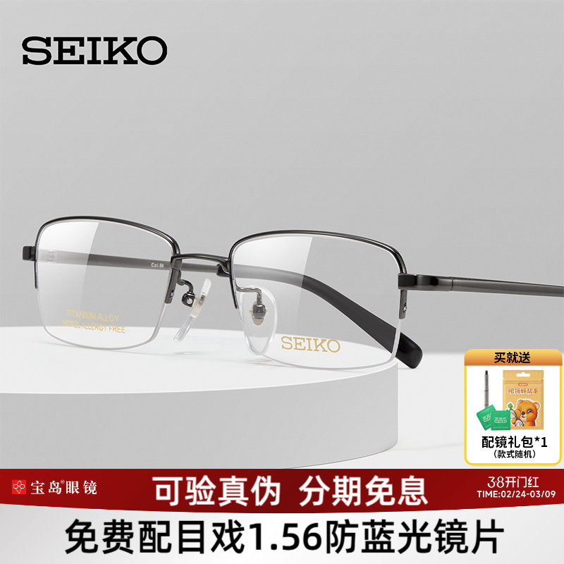 SEIKO精工眼镜架 男士商务超轻半框高度数配近视钛材眼镜框H01061