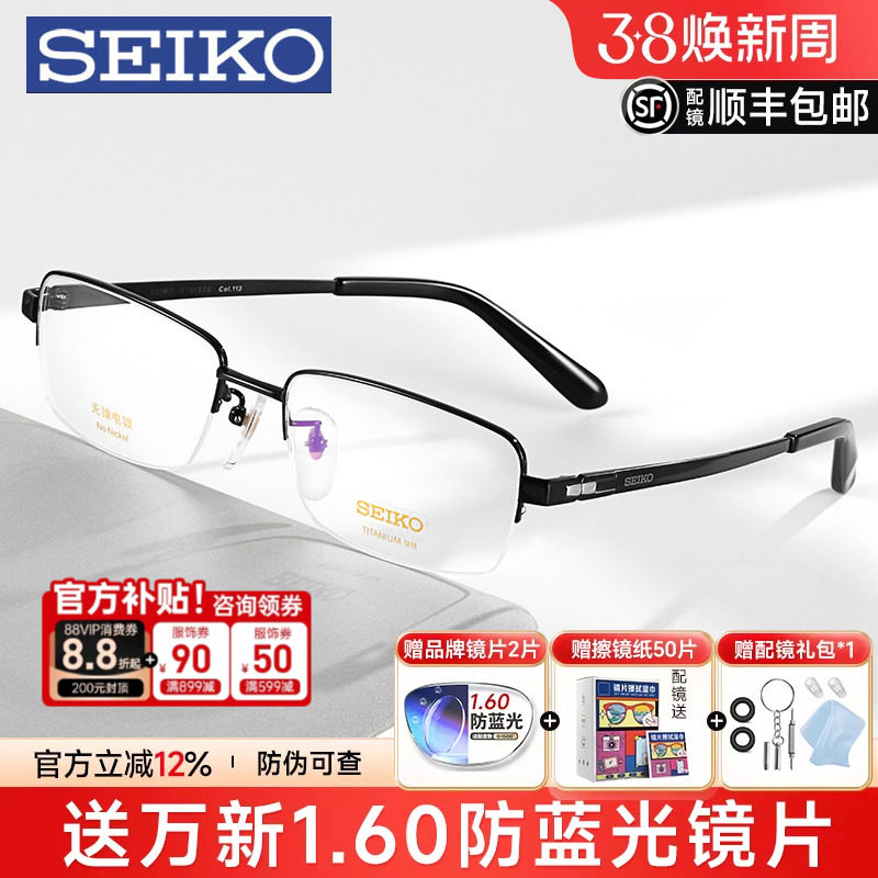 Seiko精工眼镜框男款近视钛架商务半框方圆脸可配度数女HT01077