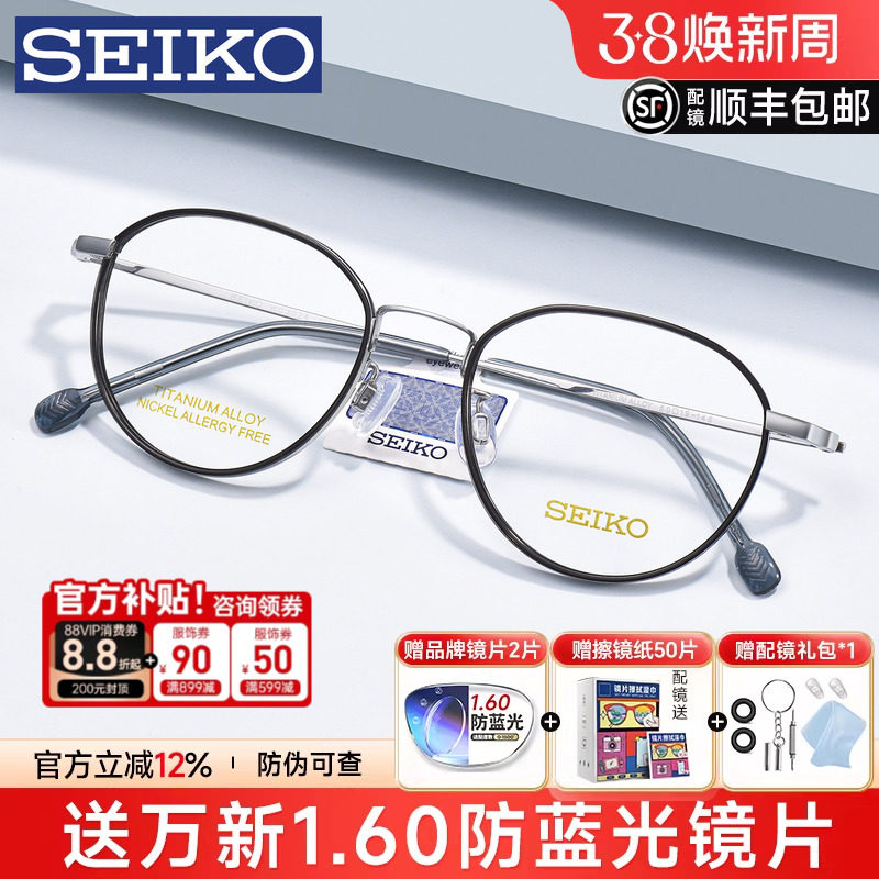 SEIKO精工眼镜框女近视眼镜圆框眼镜架男可配近视合金眼镜H03097