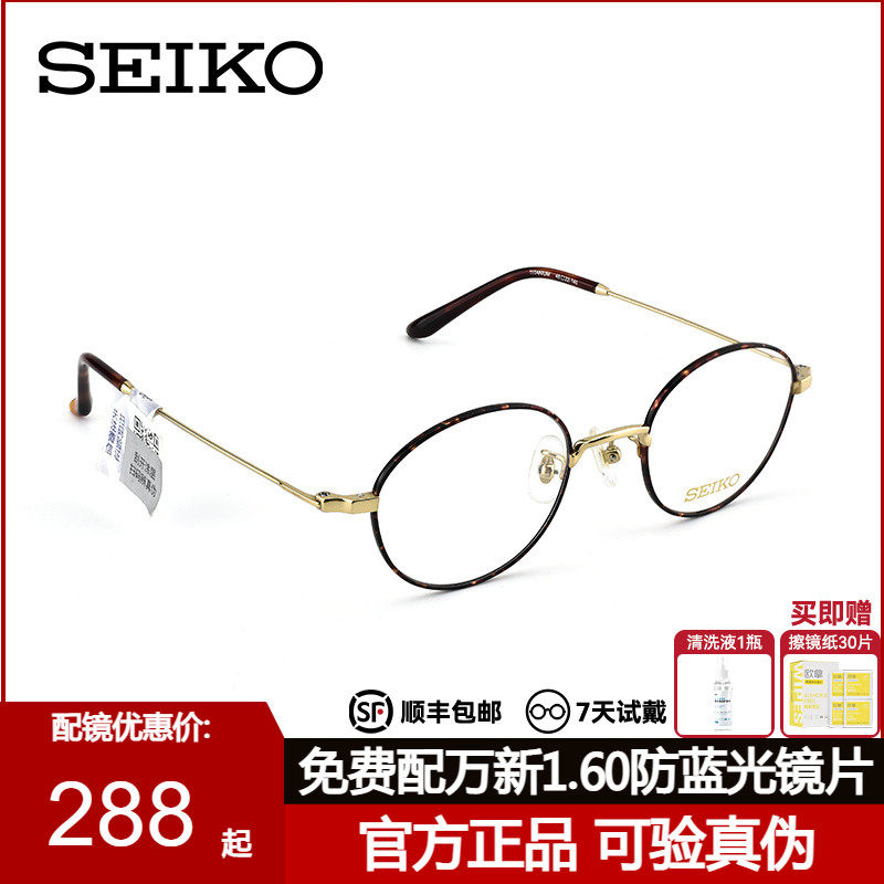 Seiko精工眼镜框玳瑁女款可配度数防蓝光近视钛架男士新款HO3091