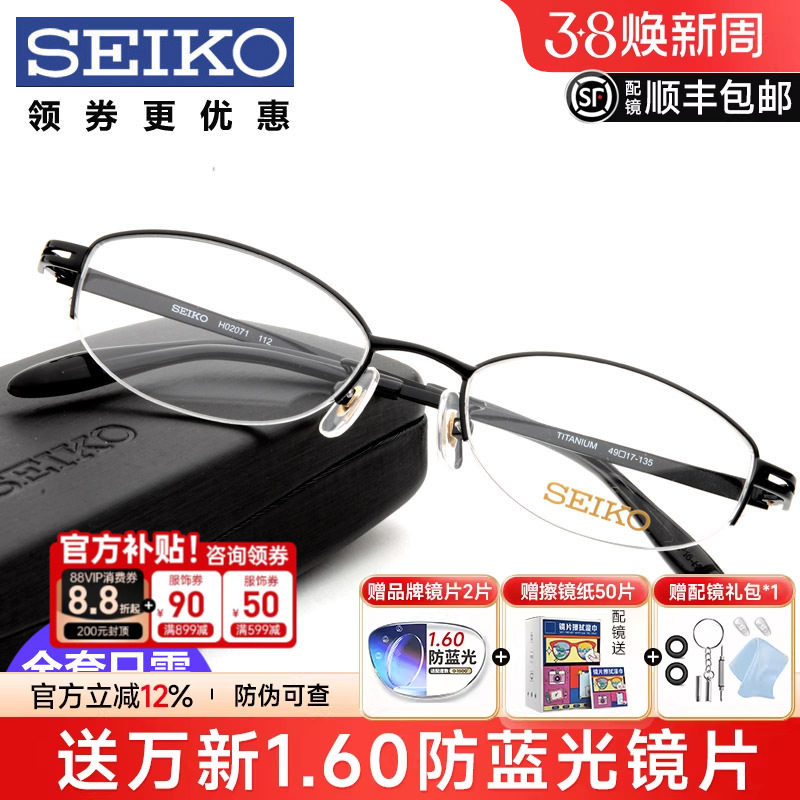 Seiko精工眼镜框男近视眼镜架女钛架眼睛半框光学眼镜HC1020