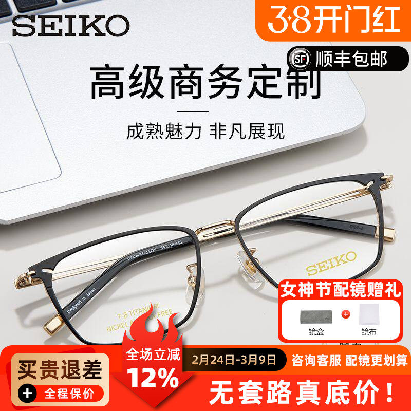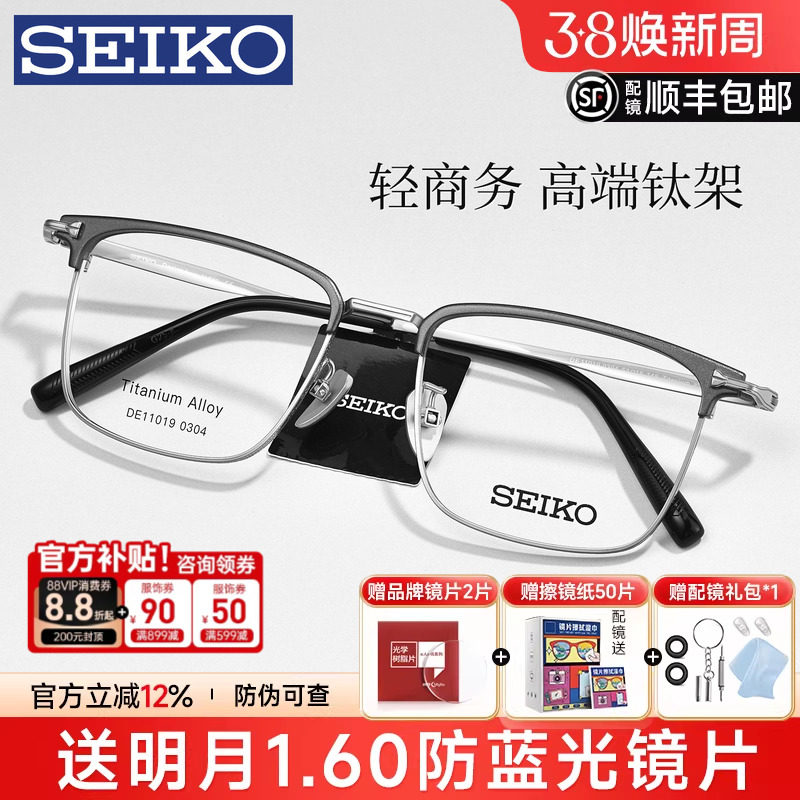 SEIKO精工眼镜架钛合金商务男士眉框可选配防蓝光近视宝岛1202