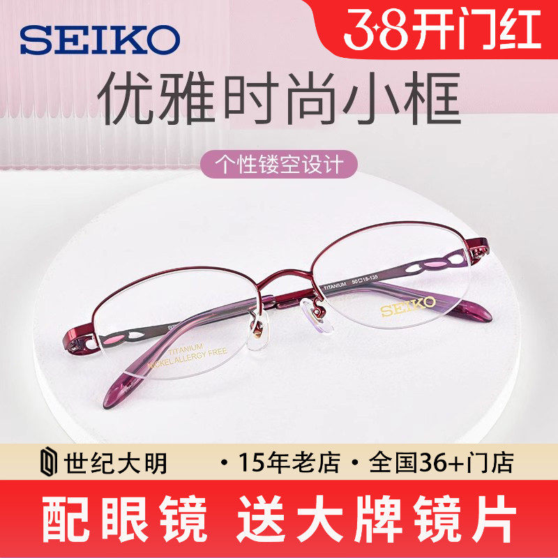 SEIKO精工眼镜框钛合金女商务小框眼镜架可配高度数近视镜片2027