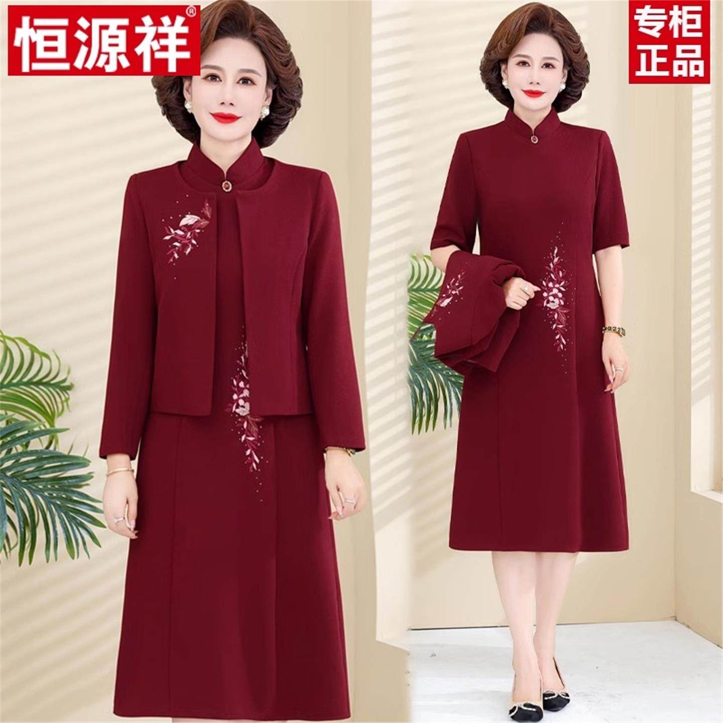 恒源祥中老年妈妈结婚礼服高贵连衣裙套装喜婆婆两件套婚宴装秋装