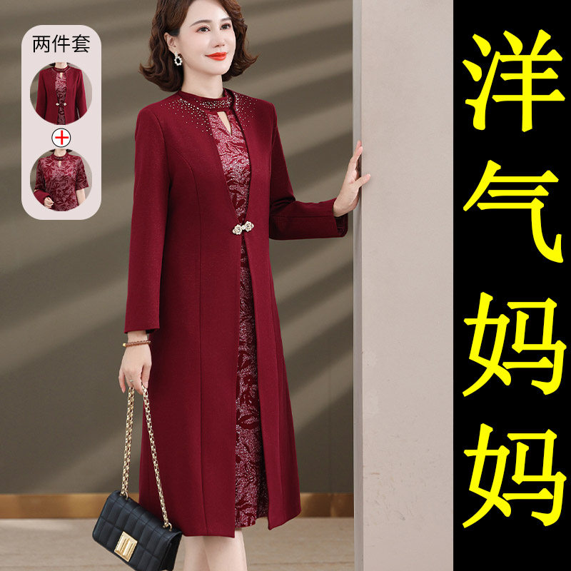 中年妈妈连衣裙套装春秋参加结婚礼喜婆婆婚宴装高贵礼服秋季旗袍