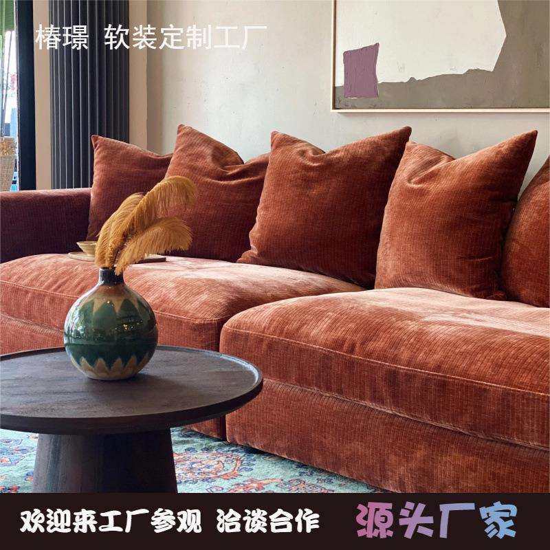 复古风灯芯绒布艺沙发美式中古风小户型客厅直排三人法式田园组合