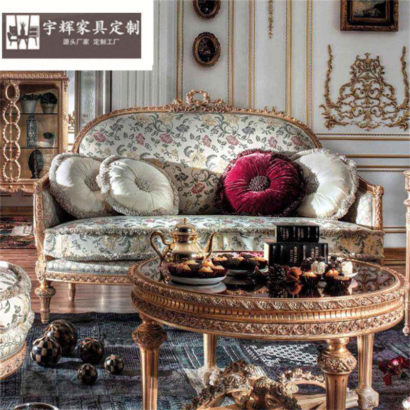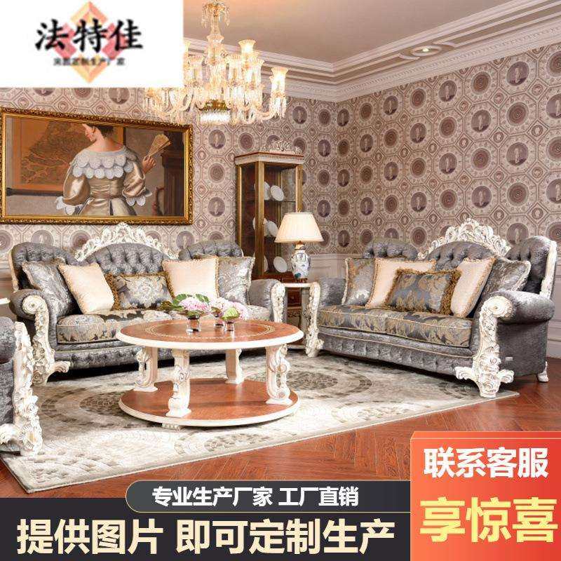欧式田园布艺沙发组合套装客厅美式全实木雕花简约轻奢高端三人位