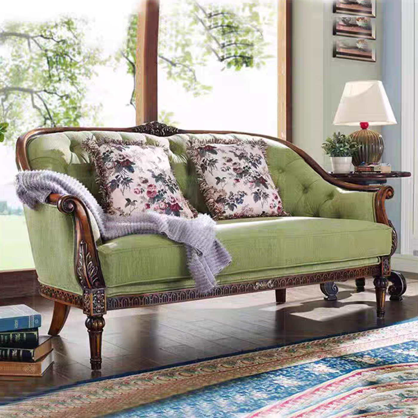 美式乡村复古实木布艺沙发客厅单双三人沙发组合田园提花布料沙发