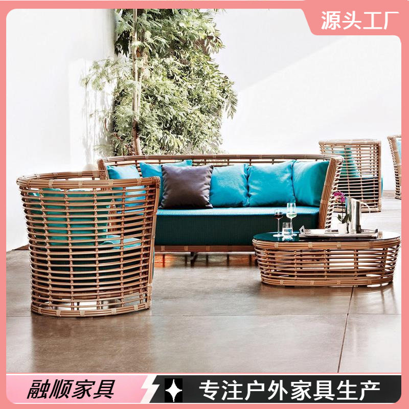 户外沙发露天阳台桌椅田园藤椅室外庭院花园客厅别墅藤编家具组合