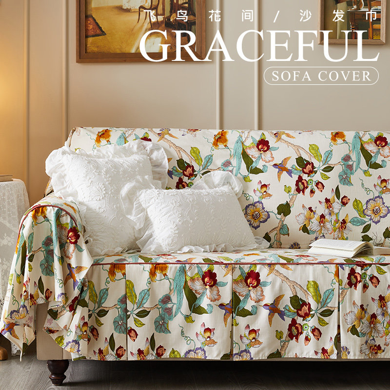 田园沙发巾美式沙发垫罩盖布全包棉线毯单双三人组合沙发搭布防滑