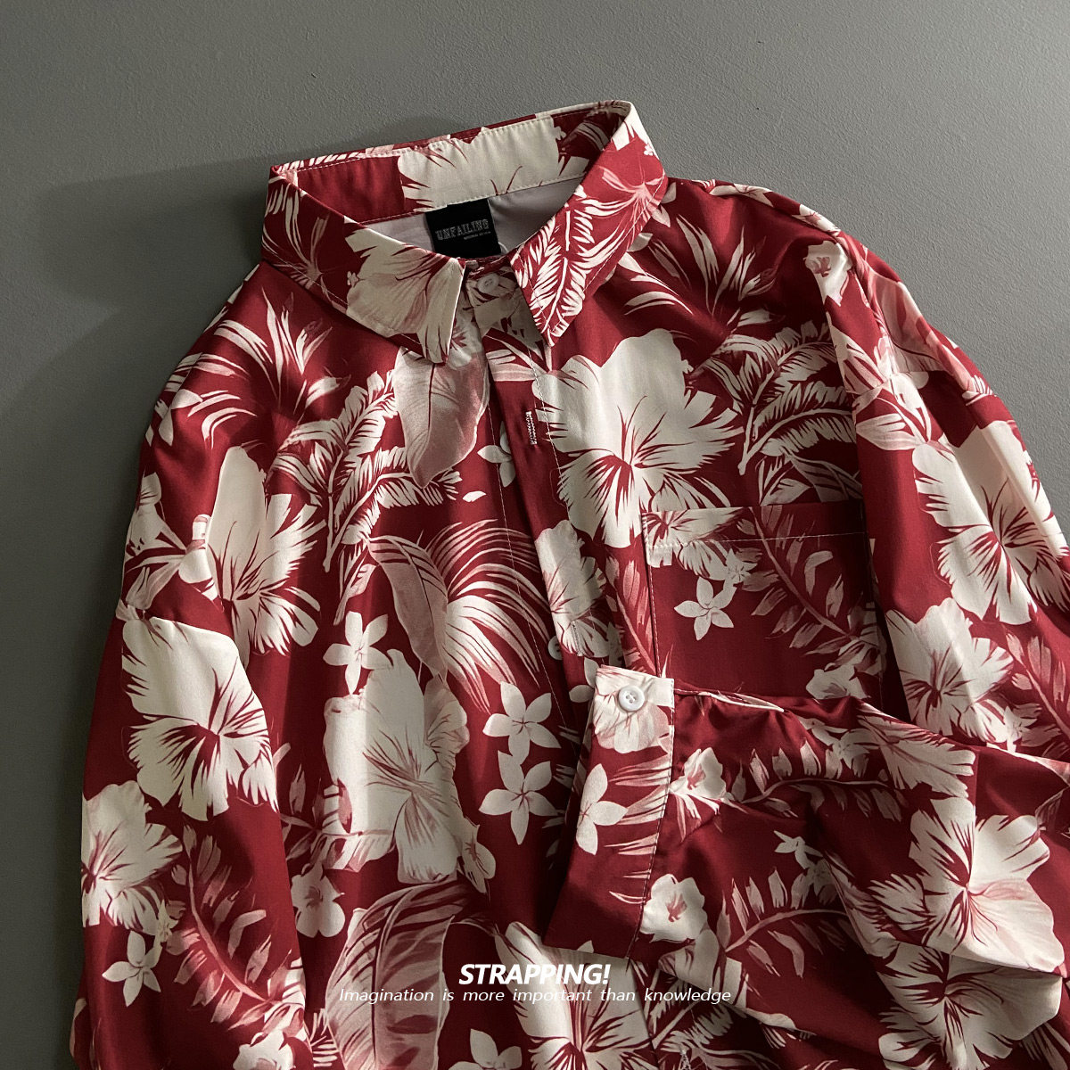 STRAPPING植物花卉红底碎花长袖花衬衫港风复古日系男女新年春节