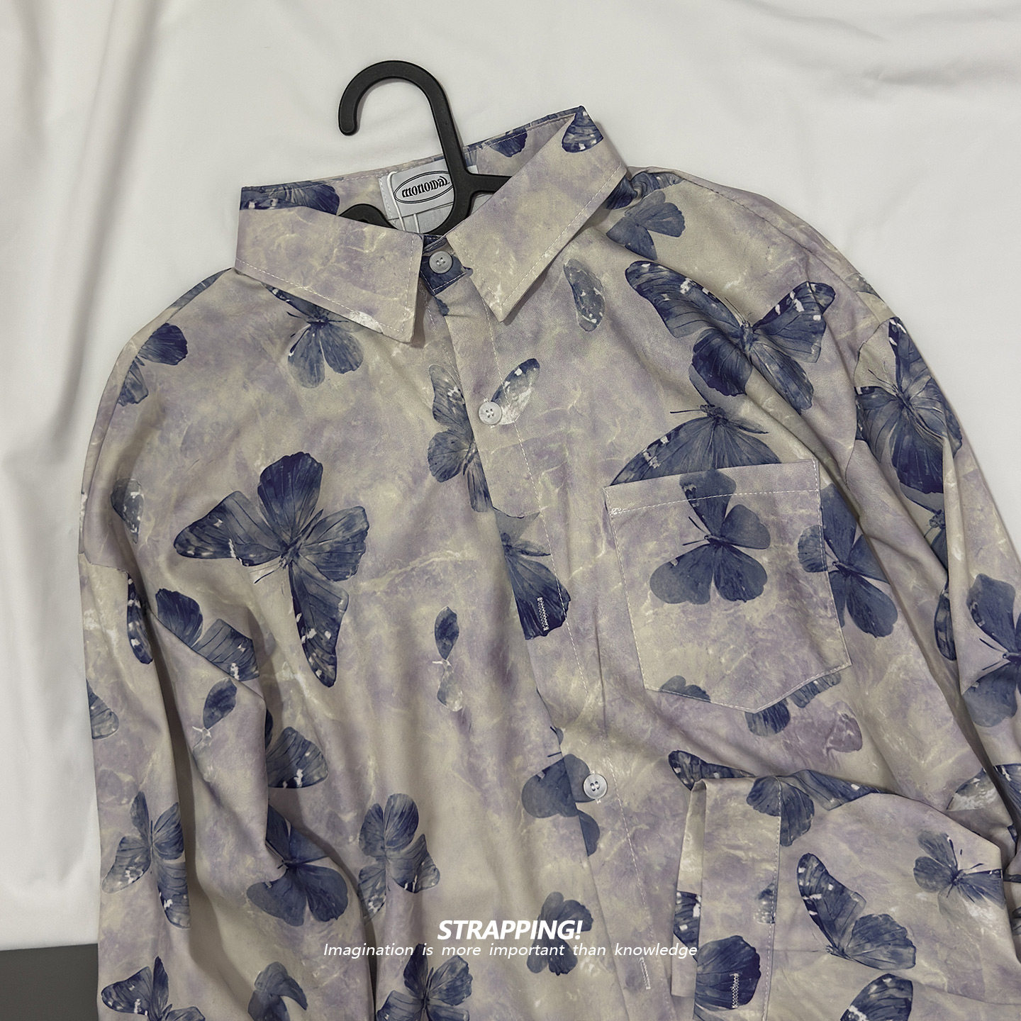 STRAPPING蝴蝶印象碎花长袖花衬衫港风复古日系男女痞帅春秋