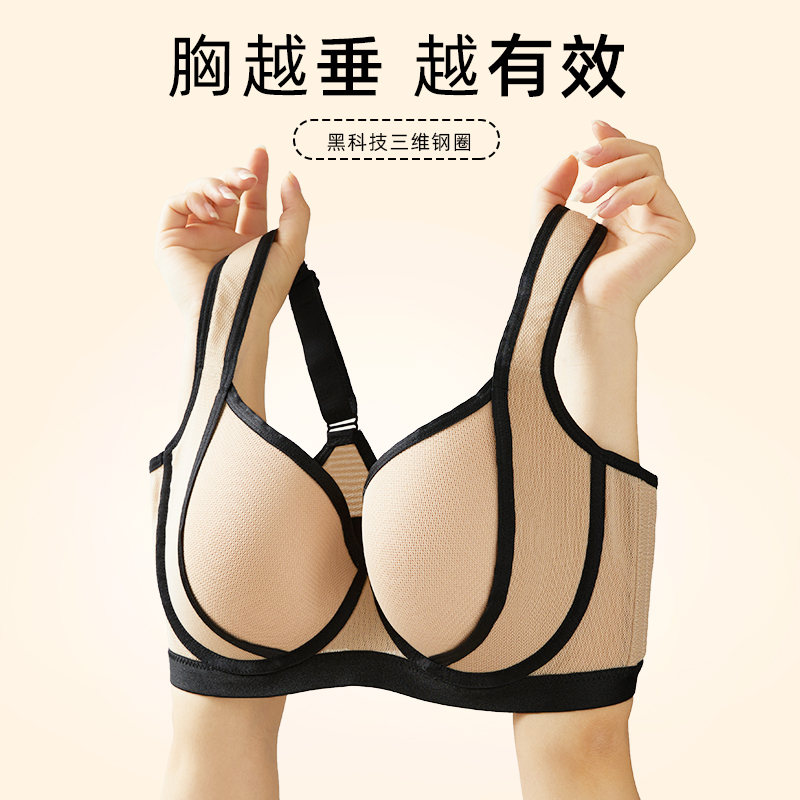 性感美背蕾丝大码文胸全罩杯薄款内衣调整型防下垂矫正聚拢收副乳