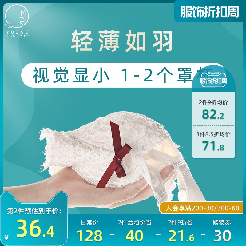 月色大胸内衣女夏薄款大胸显小防下垂白色蕾丝N大码文胸全罩杯胖m