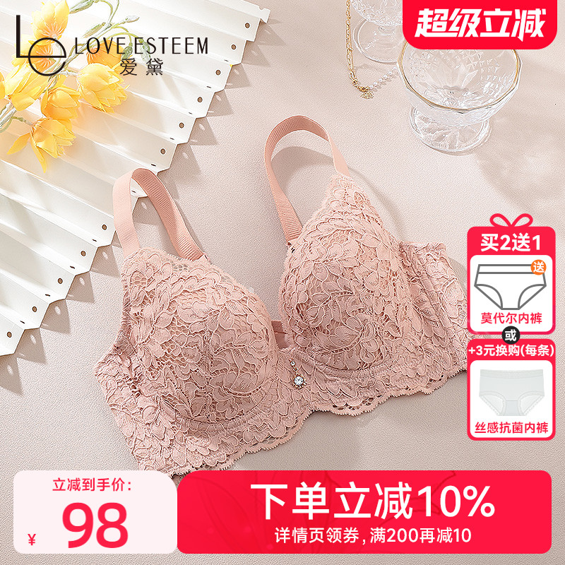 爱黛性感蕾丝美背内衣女大胸收副乳上托聚拢调整型大码文胸全罩杯
