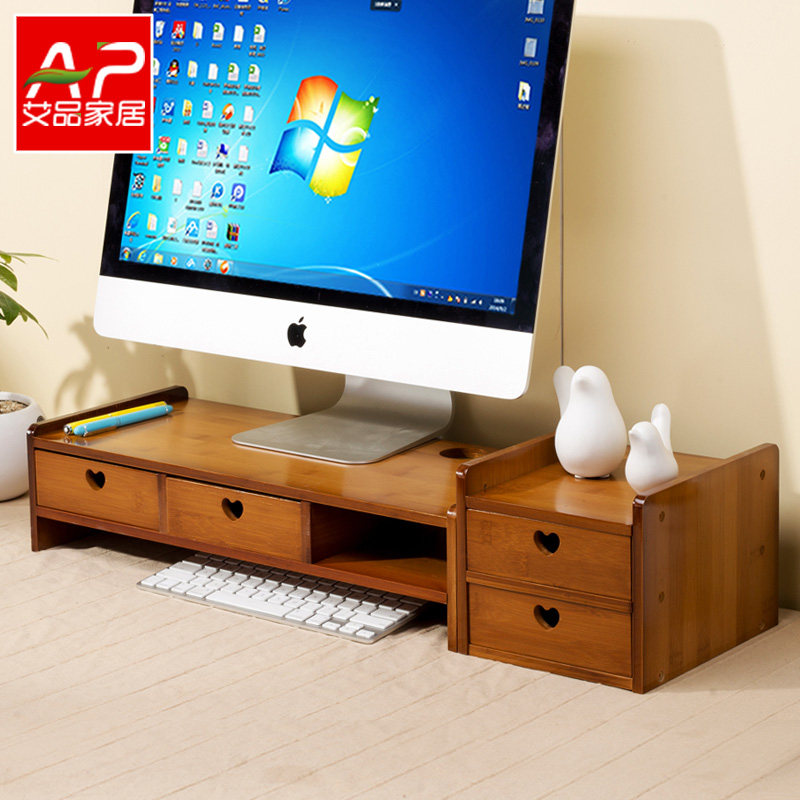 台面宿舍电脑增高架子台式显示器支架垫高实木简易收纳办公室桌面