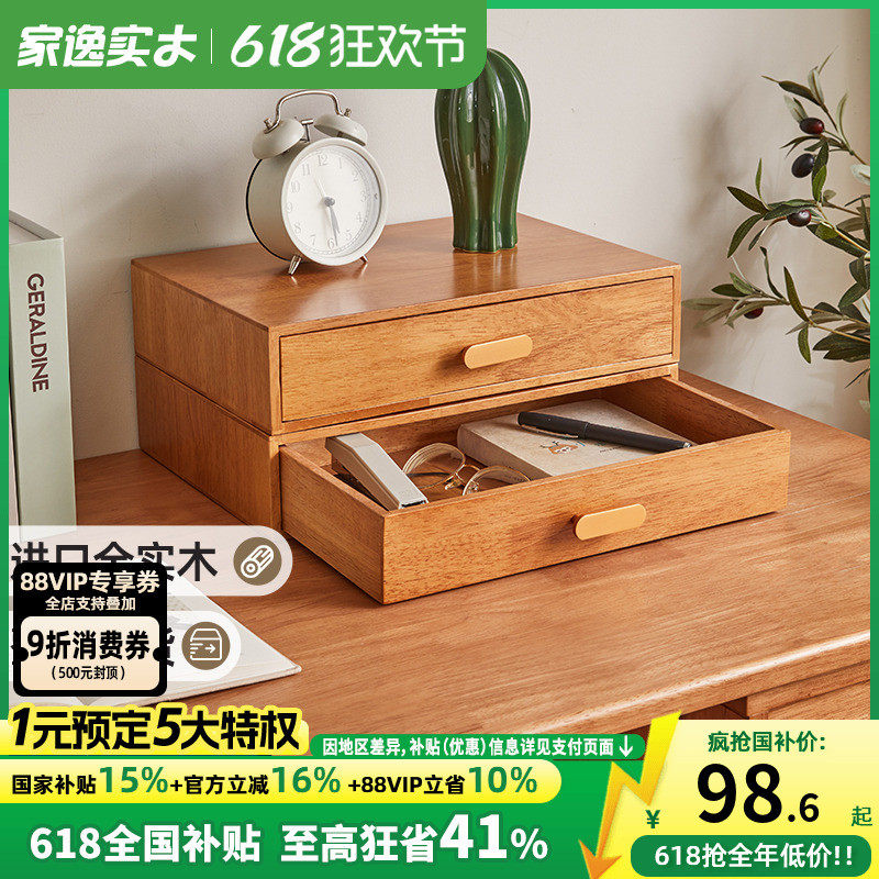 实木多层抽屉式桌面收纳盒家用办公室桌上文件储物盒电脑增高架子