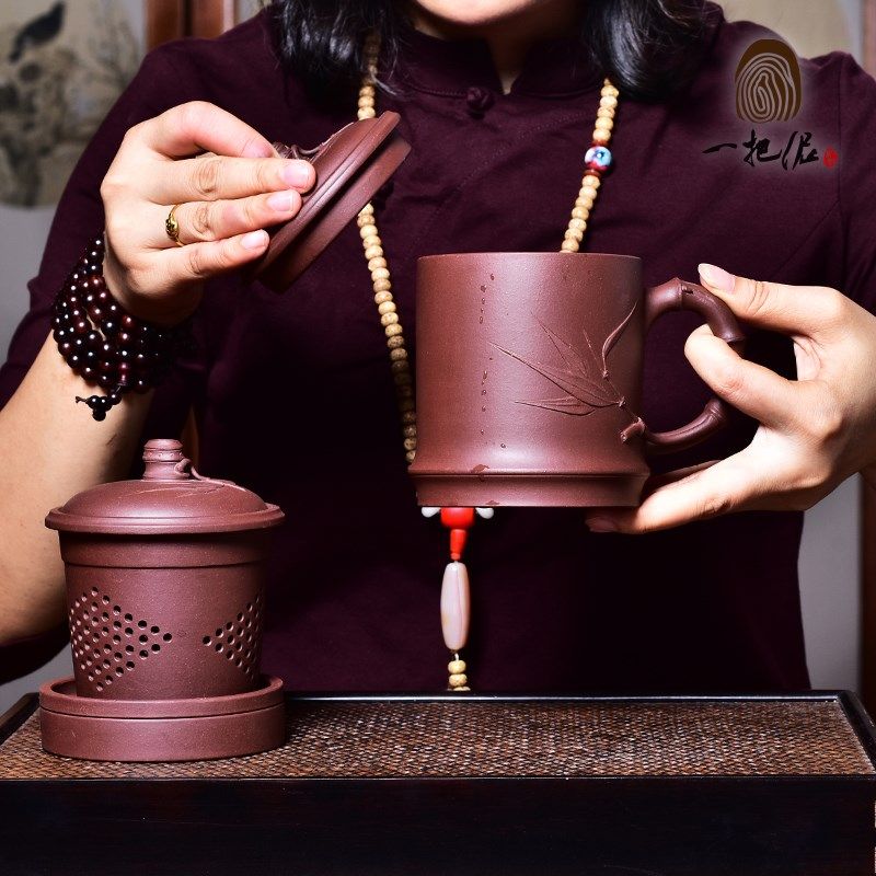 紫砂办公茶杯带盖内胆过滤茶水分离家用泡茶水杯个人专用礼品定制